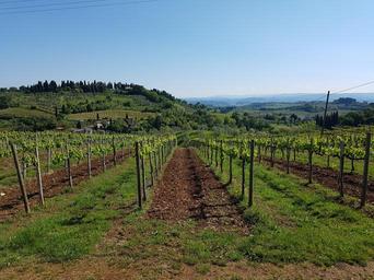 Keywords: wine vines chianti tuscany landscape wine region vine mediterranean italy nature outlook panorama toscana idyll sky winegrowing field
