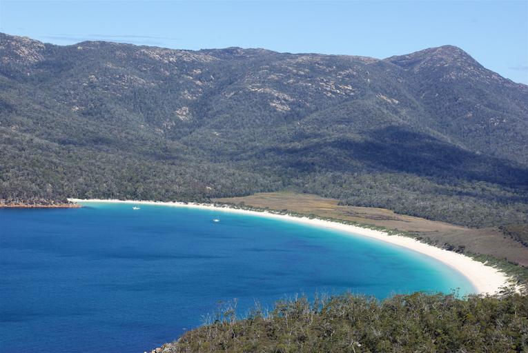 Keywords: wineglass bay beach tasmania bay australia scenic sand freycinet wilderness panorama landscape nature mountain water coastline sea coast ocean