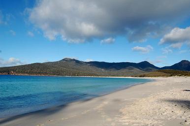 Keywords: wineglass bay tasmania australia beach empty mountains