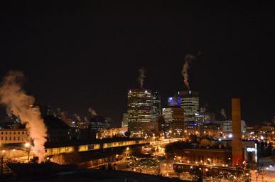 Keywords: winnipeg canada night evening skyline city cities lights urban buildings architecture winter snow ice
