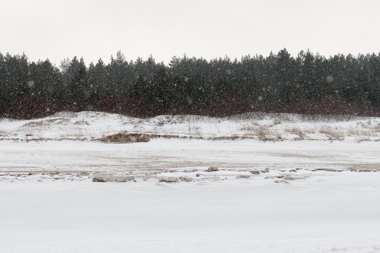 Keywords: latvia jurmala baltic sea balticsea gulf of riga gulfofriga bay seaside beach winter snow snowing ice forest trees spruce fir shore coast outdoor Jurmala beach in winter Jurmala beach in winter