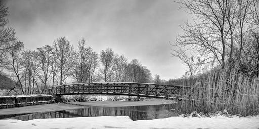 Keywords: winter bridge cold frost snow river nature outdoors ice season travel park landmark architecture