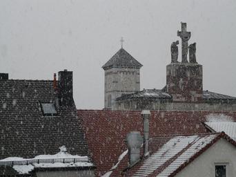 Keywords: winter city snow snowfall snowflake snowflakes home house roof church cold icy