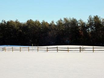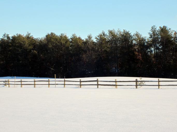 Keywords: winter field fence treelike blue sky horizontal snow