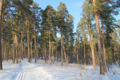 Keywords: winter forest trees road snow frost sun pine winter forest trees