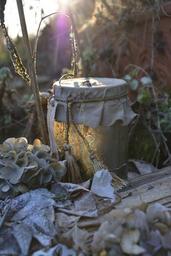 Keywords: winter frost old glass morbid winter light fades wilted flowers