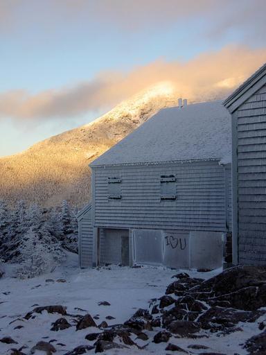 Keywords: winter icy frozen building snow mountain hut graffiti spray paint abandoned closed deserted sunset white mountains i love you valentine's day