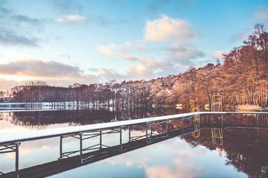 Keywords: winter lake water waterscape sun sunny day snow pier trees sky sunlight poland pond frozen cold snowy shore nature white