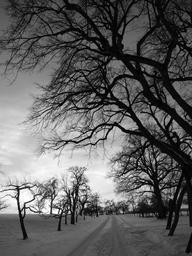 Keywords: winter landscape snow away trace tree nature wintry black white
