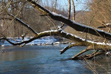 Keywords: winter river nature snow landscape mirroring water trees ice cold wintry frozen forest ice floes mood water reflection