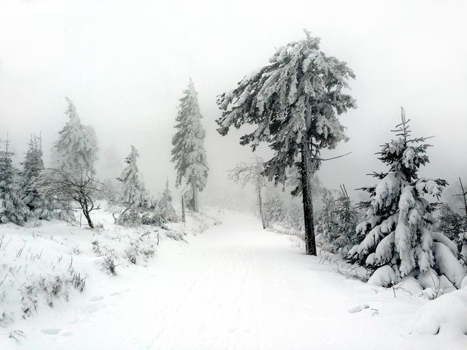 Keywords: winter snow tree bush nature wintry fog firs fir forest wanderer atmosphere mountain grey winter mood mystical coniferous forest away winter forest winter hike conifer road