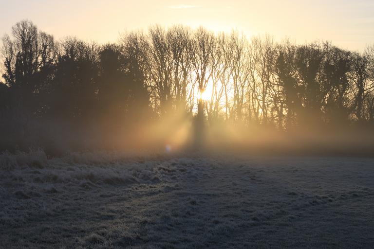 Keywords: winter sunrise tree frozen trees winter magic sky white rays sun golden glow glistening dark landscape dramatic sunlight