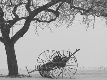 Keywords: winter tree kahl snow still life hay tedders agriculture cold wintry snow landscape black and white