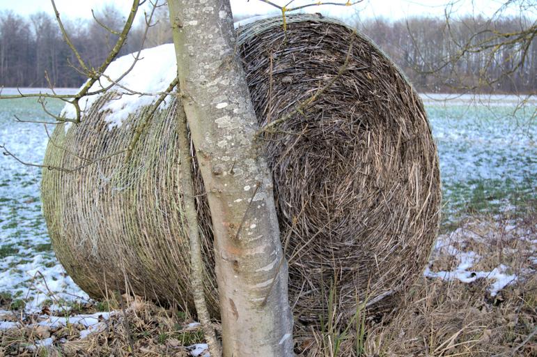 Keywords: winter tree straw bales agriculture wintry cold vörstetten emmendingen