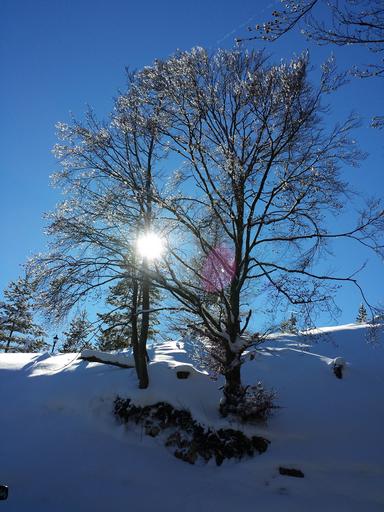 Keywords: wintry snow snow landscape winter magic tree hiking nature sun bavaria