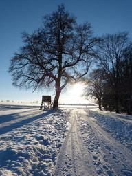 Keywords: wintry tree away evening abendstimmung traces snow landscape winter mood