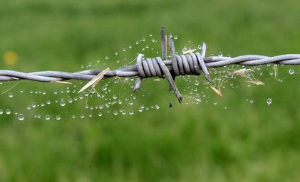 Keywords: wire barbed wire fence security metal spur pointed prickly cobweb drop of water raindrop wet heuhalme