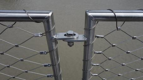 Keywords: wire pipes railing bridge railing regularly pattern metal shiny construction screwed screw bolt connection technology