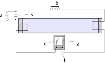 | Keywords: Wiring of fluorescent lamp.gif Wiring of fluorescent lamp a - input b - inductor c - compenzate capacitor d - starter e - bimetal electrode f - capacitor Zapojení zářivky a - vstup b - tlumivka c - kompenzační kondenzátor d - startér e - bimetalová elektroda f - odrušovací kondenzátor own work vlastní dílo 6 8 2007 Check categories 2009 February 7 cs wikipedia Zářivka Compact fluorescent lamp 1 Wiring diagrams of reactive power supplies for fluorescent lamp | ||||