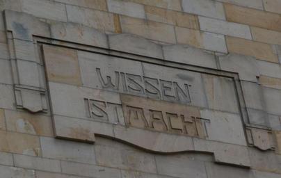Keywords: Wissen ist Macht.JPG en Inscription in Mannheim Germany Own Immanuel Giel 2009-06 Friedrich-List-Schule Mannheim