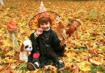 Keywords: witch halloween child girl autumn leaves hats cloak spell