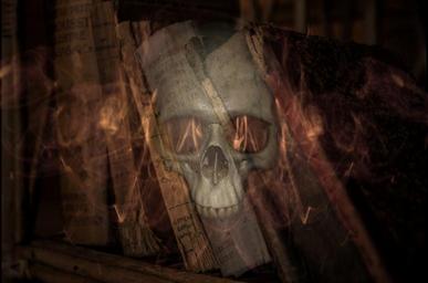 Keywords: witching hour skull and crossbones books fire creepy horror spooky