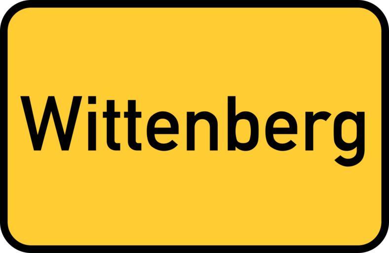 Keywords: wittenberg saxony-anhalt lutherstadt luther town sign city limits sign entry sign gateway sign traffic road sign street sign directory yellow germany direction unesco world heritage site