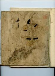 | Keywords: Wittig.collection.manuscript.01.japanese.art.scrapbook.image.12.page.15.leaf.08.jpg en Image of a young samurai warrior standing on the edge of a rocky precipice He is in full armour armed with bow arrows katana naginata Signed sealed artist not identified; also includes title/caption an apparently subsequent graffito marking translations needed Japanese woodblock print; ukiyo-e musasha-e surimono ; coloured embossed printed on thick light card-stock thickness washi-type paper; 18th to 19th century/later Edo period Wittig collection manuscript-01 a Japanese art scrap-book; identified as containing fragments of paintings prints dating from approximately the Sengoku through Edo periods; item 12 of 13 located on page 15 leaf 08 right-to-left scan of manuscript scrap- book creator of print not identified compiler of scrap-book not identified scanned by uploader 18 or previous all works in this scrapbook date from approximately the Sengoku through Edo periods PD-old scanset of manuscript scrap- book ORIGINAL UPLOAD VERSION OF FILE please do not overwrite Scanned at 12 800 dpi 48 bit colour raw scan with no enchancements compressed jpg Scale reference scan-bed is approximately 14 x 7 ; more precise measurements pending Translations needed Image could benefit from restoration cropping to produce version focussed exclusively on the painting fragment full set of images could be joined to create an e-book version of original art scrap-book etc Japanese manuscripts Scrapbooking Paintings of the Edo period Woodcuts of Japan Historic samurai prints Wittig collection manuscript 01 japanese art scrap-book Source scan of manuscript scrap- book |