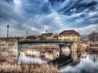 Keywords: witzenhausen bridge river houses urban germany sky