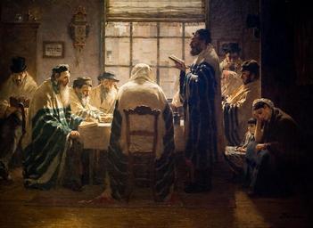 | Keywords: WLANL - MicheleLovesArt - Joods Historisch Museum - Schilderij Voerman (1111).jpg De Rouwdagen De treurdagen Material fabric wood oil An oil painting with from left to right Interior with four seated men dressed in tallit a figure viewed from the back a reader in tallit standing and facing to the left two men two women and a child the scene around a table in front of a window open door on the far right http //www flickr com/photos/39627257 N04/3687575441/ Joods Historisch Museum - Schilderij Voerman 1111 2009-06-01 15 04 WLANL ~ 1884 Creator Jan Voerman 52 367382 4 903625 PD-old 19th-century genre paintings Joods Historisch Museum Figurative paintings 19th-century oil paintings in the Netherlands Jan Voerman 1857-1941 Paintings of Jews People reading in art Tallit People with clocks in art People in rooms in art |