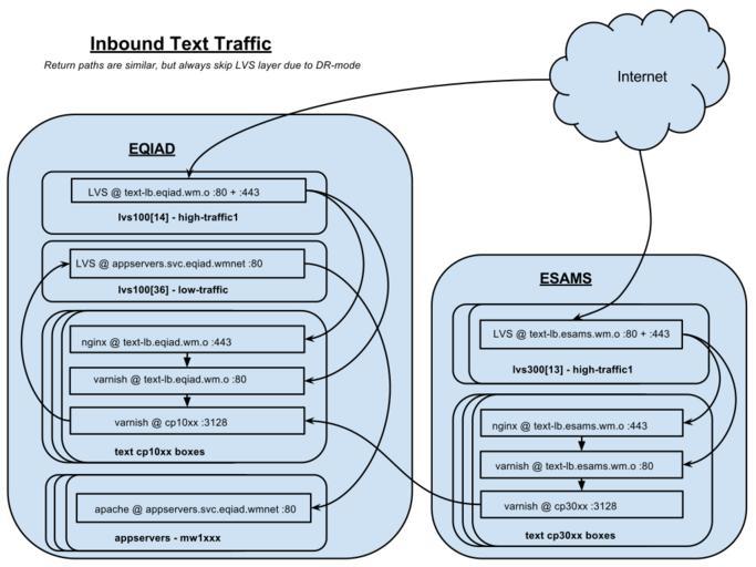 Keywords: WMF Inbound Text Traffic Diagram.svg en Diagram of traffic flow for text traffic through the edge LVS and Varnish layers at Wikimedia 2015-02-02 own BBlack WMF other versions cc-zero Uploaded with UploadWizard Wikimedia technical operations |