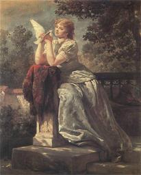 | Keywords: Wojciech Gerson-Dziewczyna z golabkiem.jpg Artwork title Girl with a pigeon Dziewczyna z gołąbkiem oil canvas cm 71 5 89 Institution National Museum Poznań http //www pinakoteka zascianek pl/Gerson/Images/Dziewczyna_z_golabkiem jpg www pinakoteka zascianek pl 1886 Creator Wojciech Gerson Copyright expired PD-Art Other versions PD-old-100 Paintings by Wojciech Gerson 19th-century paintings in the National Museum in Poznań Portrait paintings of girls at full length Doves associated with innocence 1886 paintings Oil paintings Females with pigeons in art Paintings of women sitting on outdoor benches Paintings of women with birds |