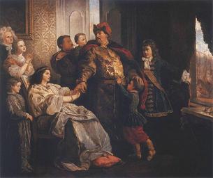 | Keywords: Wojciech Gerson-Pozegnanie Jana III.jpg Pożegnanie Jana III z rodziną przed wyprawą wiedeńską oil on canvas 169 x 201 cm Masovian Museum Płock http //www pinakoteka zascianek pl/Gerson/Index htm 1882 Wojciech Gerson Copyright expired Creator Wojciech Gerson PD-old-100 John III of Poland Battle of Vienna Families in art Paintings in the Masovian Museum in Płock 19th-century paintings Paintings by Wojciech Gerson Uniform pelisses Fur headgear in art Paintings by Wojciech Gerson with fur Maria Kazimiera Sobieska 17th-century fur fashion |