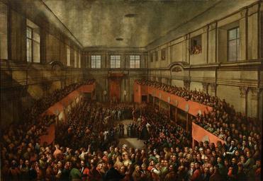 | Keywords: Wojniakowski Passing of the 3rd of May Constitution.jpg Artwork Creator Kazimierz Wojniakowski 1806 oil canvas cm 123 5 179 Institution National Museum Warsaw Not on view accession number MP 5211 object history credit line https //wolnelektury pl/media/pictures/images/wojniakowski-uchwalenie-konstytucji-3-maja_ioXNINi jpeg wolnelektury pl See below PD-old-100 DEFAULTSORT 1806; Passing of the 3rd of May Constitution Paintings by Kazimierz Wojniakowski in the National Museum in Warsaw Constitution of the 3rd May 1791 Senate Chamber Royal Castle Warsaw Warsaw in the 1790s |