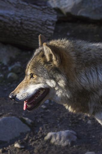 Keywords: wolf canis lupus predator profile portrait european wolf zoo pack animal mammal animal sun light