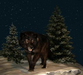 Keywords: wolf night starry sky stars night sky animal wild life tree snowing canine nature dangerous predator british columbia canada museum taxidermy