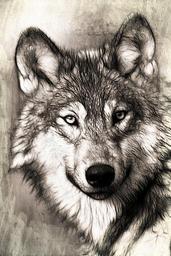 Keywords: wolf portrait head predator canidae canis lupus hunter carnivores canine animal mammal art digital art computer graphic artwork nature graphical black and white painting wild life