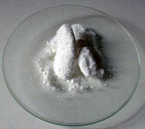 Keywords: Wolframan sodný.JPG Na2WO4 Own 2007-10-11 Ondřej Mangl Sodium tungstate Watch glasses laboratory Samples of chemical compounds