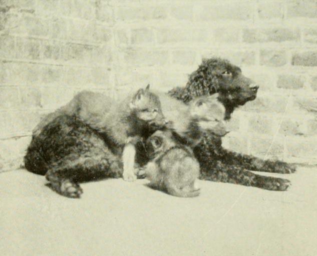 | Keywords: Wolves foster mother.png  en Wolf pups with their foster mother The book of the animal kingdom Westell William Percival 1874-1937 1910 PD-old Nursing wolves Curly Coated Retriever Black and white photographs of dogs Dogs with other animals Canis lupus juvenile  |
