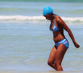 Keywords: woman afrikanerin ocean swim swimsuit bathing cap black sea