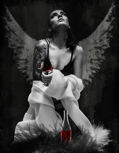 Keywords: woman angel erotic angel face female wing elegant tattoo wine plumage fantasy