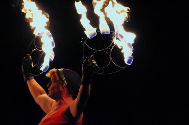 Keywords: woman artist fire fire show demonstration burn hot art glow hand glove
