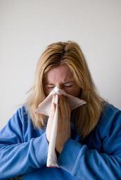 Keywords: woman blow blowing nose hand chief grey blond female model person people face ill allergy hospital disease white medicine sick flu protection virus sickness winter antiviral patient illness healthcare blue