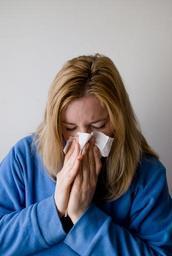 Keywords: woman blow blowing nose hand chief grey blond female model person people face ill allergy hospital disease white medicine sick flu protection virus sickness winter antiviral patient illness healthcare blue