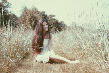 Keywords: woman female girl sitting nature young person attractive grass outdoors portrait looking brunette long hair happy lady pretty beautiful model youth smiling