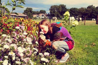 Keywords: woman flowers farm garden enjoy outdoor life