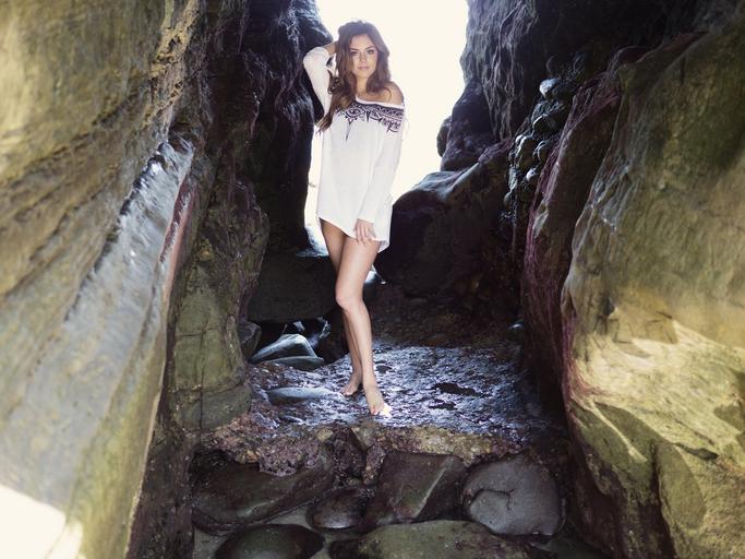 Keywords: woman girl beautiful cave white shirt long hair wavy hair brown hair sexy hot