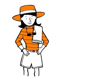 Keywords: woman girl vacation summer beach leisure orange tourist female holiday hat sunglasses towel shorts striped top