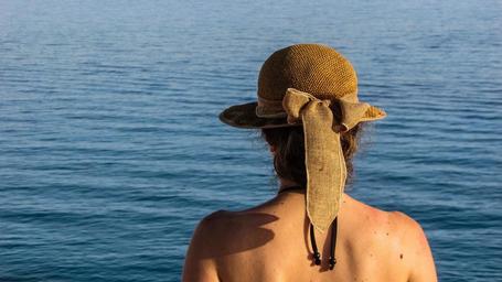 Keywords: woman hat sea vacation summer leisure relaxation musing