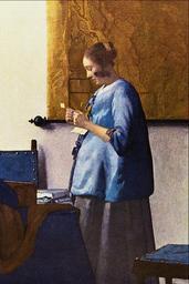 | Keywords: Woman in Blue - Jan Vermeer van Delft.png Artwork Creator Johannes Vermeer LangSwitch Die Briefleserin Woman reading a letter <ref>https //www rijksmuseum nl/collectie/SK-C-251 Brieflezende vrouw - Rijksmuseum Amsterdam - National Museum for Art and History </ref> Femme lisant une lettre <ref>Marleen Domenicus-van Soest 2003 Les Chefs-d'oeuvre Guide mus cat Amsterdam Rijksmuseum Amsterdam p 114 </ref> Brieflezende vrouw <ref>https //www rijksmuseum nl/collectie/SK-C-251 Brieflezende vrouw - Rijksmuseum Amsterdam - Nationaal Museum voor Kunst en Geschiedenis </ref> Alternate titles ~ 1662-1663 1647-1675 oil canvas cm 46 5 39 Rijksmuseum Amsterdam accession number SK-C-251 object history credit line Provenance by 1854 Adriaan van der Hoop 1778-1854 Amsterdam ProvenanceEvent 1854 bequest LangSwitch die Stadt Amsterdam the city of Amsterdam de Stad Amsterdam Adriaan van der Hoop Amsterdam ProvenanceEvent 1885-06-30 loan Rijksmuseum Amsterdam LangSwitch die Stadt Amsterdam the city of Amsterdam de Stad Amsterdam source <references/> PD-old-100 Woman Reading a Letter by Johannes Vermeer 1662 Corel Professional Photos CD-ROM |